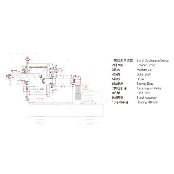 4.After the suspension liquid comes into the drum,solid products are left on the filter cloth while the liquid is forced to go through the filter cloth and internal drum and collected in the clearance between internal and external drum,then it flows into the siphon chamber through drum and via hole.